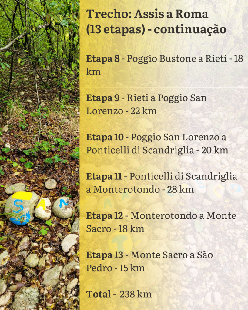O terceiro e último trecho da peregrinação que fiz em 2022 pela Via de Francesco é aquele que vai de Assis até Roma, que eu percorri em 13 dias. O ideal é fazer esse trecho em 14 dias, mas pulei uma etapa e realizei em um dia a menos.